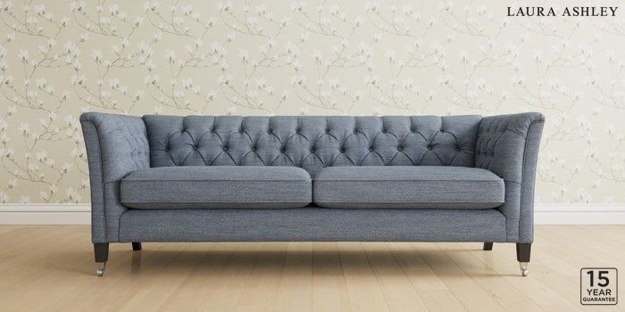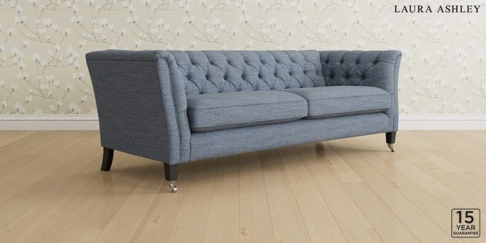 7.0.3 Buy Chatsworth Button Back by Laura Ashley 4 Seater Sofa Harley Seaspray Blue Straight Chrome Castor - Black from the Laura Ashley online shop Click here to use our website with more accessibility support, for example screen readers