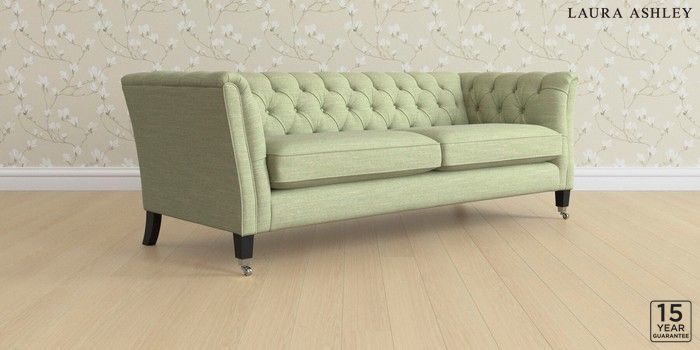 6.12.13 Buy Chatsworth Button Back by Laura Ashley 4 Seater Sofa Kinsham Hedgerow Green Straight Chrome Castor - Black from the Laura Ashley online shop Click here to use our website with more accessibility support, for example screen readers