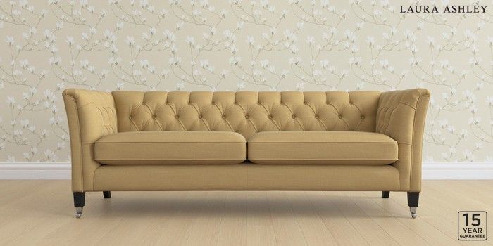 6.12.1 Buy Chatsworth Button Back by Laura Ashley 4 Seater Sofa Kinsham Ochre Yellow Straight Chrome Castor - Black from the Laura Ashley online shop Click here to use our website with more accessibility support, for example screen readers