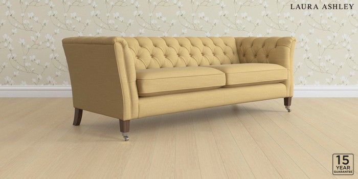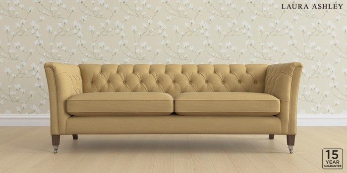 6.12.1 Buy Chatsworth Button Back by Laura Ashley 4 Seater Sofa Kinsham Ochre Yellow Straight Chrome Castor - Chestnut from the Laura Ashley online shop Click here to use our website with more accessibility support, for example screen readers