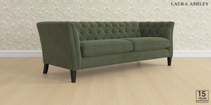 6.12.1 Buy Chatsworth Button Back by Laura Ashley 4 Seater Sofa Lundar Chenille Ivy Green Straight Mid - Black from the Laura Ashley online shop Click here to use our website with more accessibility support, for example screen readers
