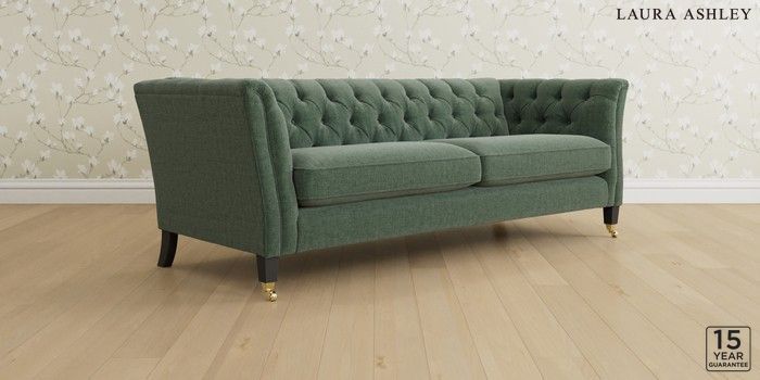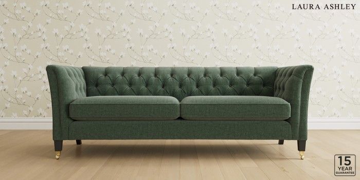 6.12.1 Buy Chatsworth Button Back by Laura Ashley 4 Seater Sofa Nantmor Fern Green Straight Brass Castor - Black from the Laura Ashley online shop Click here to use our website with more accessibility support, for example screen readers