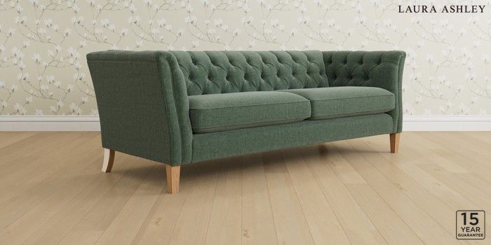 6.12.1 Buy Chatsworth Button Back by Laura Ashley 4 Seater Sofa Nantmor Fern Green Straight Mid - Light Oak from the Laura Ashley online shop Click here to use our website with more accessibility support, for example screen readers