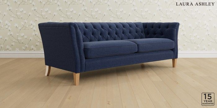 6.12.1 Buy Chatsworth Button Back by Laura Ashley 4 Seater Sofa Nantmor Midnight Navy Straight Mid - Light Oak from the Laura Ashley online shop Click here to use our website with more accessibility support, for example screen readers