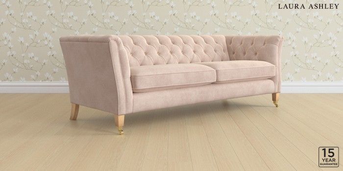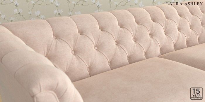 6.12.1 Buy Chatsworth Button Back by Laura Ashley 4 Seater Sofa Orla Chalk Pink Straight Brass Castor - Light Oak from the Laura Ashley online shop Click here to use our website with more accessibility support, for example screen readers
