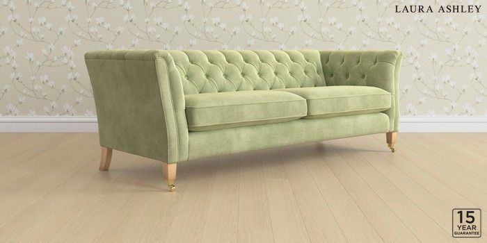 6.12.1 Buy Chatsworth Button Back by Laura Ashley 4 Seater Sofa Orla Pale Hedgerow Green Straight Brass Castor - Light Oak from the Laura Ashley online shop Click here to use our website with more accessibility support, for example screen readers