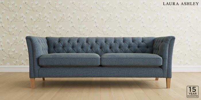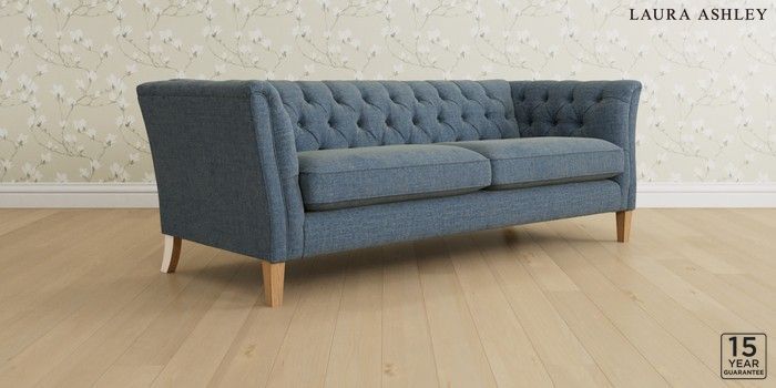 6.12.1 Buy Chatsworth Button Back by Laura Ashley 4 Seater Sofa Orla Seaspray Blue Straight Mid - Light Oak from the Laura Ashley online shop Click here to use our website with more accessibility support, for example screen readers