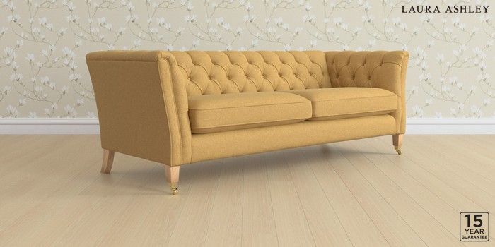 6.12.1 Buy Chatsworth Button Back by Laura Ashley 4 Seater Sofa Peyton Ochre Yellow Straight Brass Castor - Light Oak from the Laura Ashley online shop Click here to use our website with more accessibility support, for example screen readers