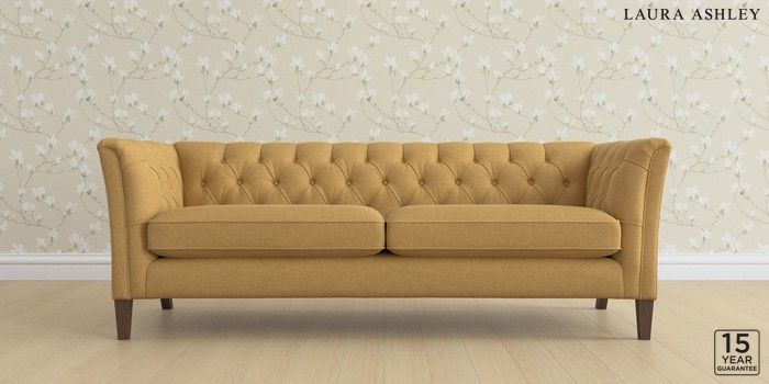 6.12.1 Buy Chatsworth Button Back by Laura Ashley 4 Seater Sofa Peyton Ochre Yellow Straight Mid - Chestnut from the Laura Ashley online shop Click here to use our website with more accessibility support, for example screen readers