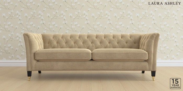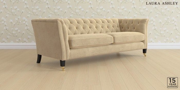 6.12.13 Buy Chatsworth Button Back by Laura Ashley 4 Seater Sofa Peyton Sable Natural Straight Brass Castor - Black from the Laura Ashley online shop Click here to use our website with more accessibility support, for example screen readers