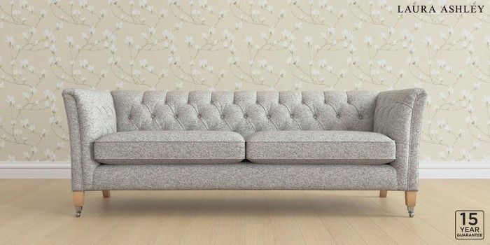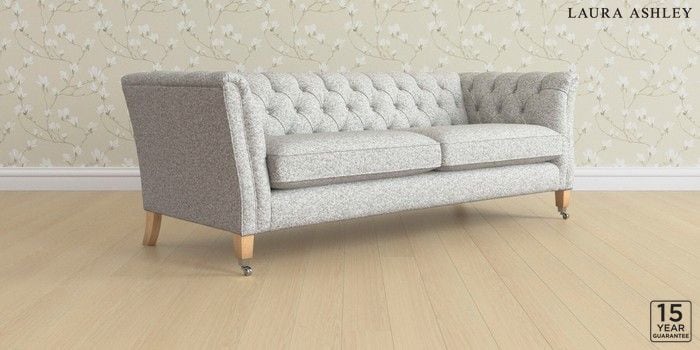 6.12.1 Buy Chatsworth Button Back by Laura Ashley 4 Seater Sofa Tichwell Steel Grey Straight Chrome Castor - Light Oak from the Laura Ashley online shop Click here to use our website with more accessibility support, for example screen readers