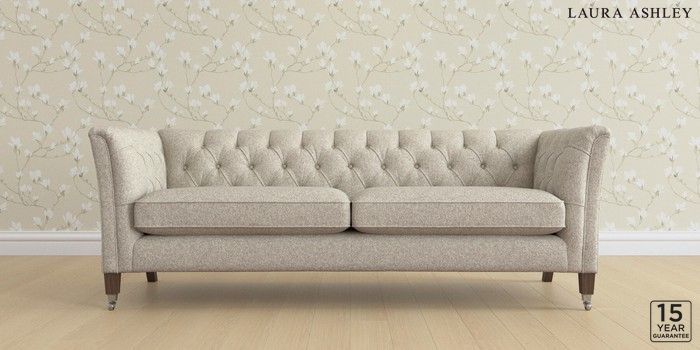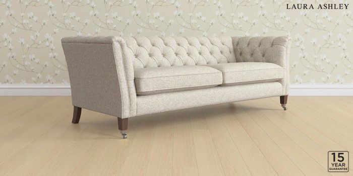 6.12.1 Buy Chatsworth Button Back by Laura Ashley 4 Seater Sofa Tichwell Stone Natural Straight Chrome Castor - Chestnut from the Laura Ashley online shop Click here to use our website with more accessibility support, for example screen readers