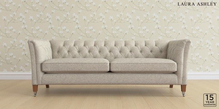 6.12.1 Buy Chatsworth Button Back by Laura Ashley 4 Seater Sofa Tichwell Stone Natural Straight Chrome Castor - Teak from the Laura Ashley online shop Click here to use our website with more accessibility support, for example screen readers