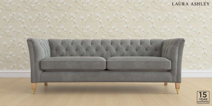 6.12.1 Buy Chatsworth Button Back by Laura Ashley 4 Seater Sofa Wooton Dark Steel Grey Straight Brass Castor - Light Oak from the Laura Ashley online shop Click here to use our website with more accessibility support, for example screen readers