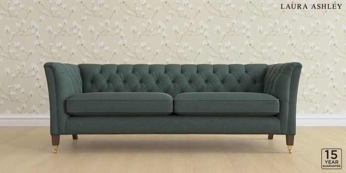 6.12.1 Buy Chatsworth Button Back by Laura Ashley 4 Seater Sofa Wooton Forest Green Straight Brass Castor - Chestnut from the Laura Ashley online shop Click here to use our website with more accessibility support, for example screen readers