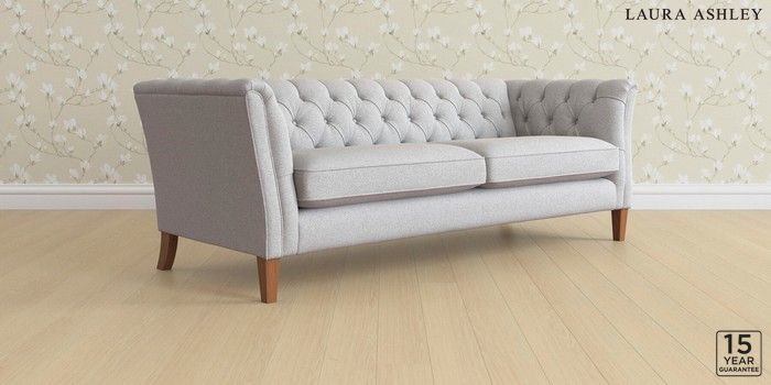 6.12.1 Buy Chatsworth Button Back by Laura Ashley 4 Seater Sofa Wooton Pale Steel Grey Straight Mid - Teak from the Laura Ashley online shop Click here to use our website with more accessibility support, for example screen readers