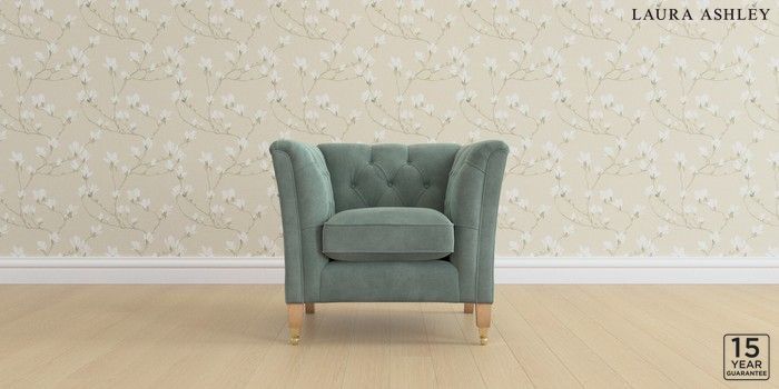 6.12.1 Buy Chatsworth Button Back by Laura Ashley Armchair Ailsworth Fern Green Straight Brass Castor - Light Oak from the Laura Ashley online shop Click here to use our website with more accessibility support, for example screen readers