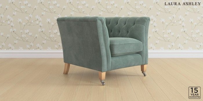 6.12.13 Buy Chatsworth Button Back by Laura Ashley Armchair Ailsworth Fern Green Straight Chrome Castor - Light Oak from the Laura Ashley online shop Click here to use our website with more accessibility support, for example screen readers