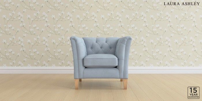 6.12.13 Buy Chatsworth Button Back by Laura Ashley Armchair Ailsworth Newport Blue Straight Mid - Light Oak from the Laura Ashley online shop Click here to use our website with more accessibility support, for example screen readers