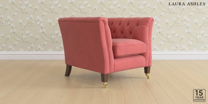 6.12.13 Buy Chatsworth Button Back by Laura Ashley Armchair Ailsworth Old Rose Pink Straight Brass Castor - Chestnut from the Laura Ashley online shop Click here to use our website with more accessibility support, for example screen readers