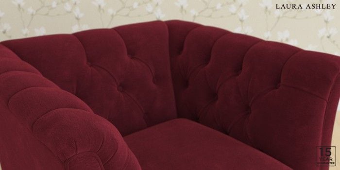 6.12.1 Buy Chatsworth Button Back by Laura Ashley Armchair Alwyn Velvet Burgundy Red Straight Brass Castor - Black from the Laura Ashley online shop Click here to use our website with more accessibility support, for example screen readers