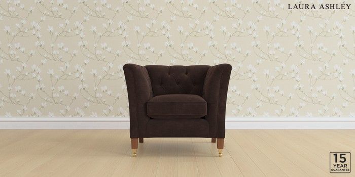 6.12.1 Buy Chatsworth Button Back by Laura Ashley Armchair Alwyn Velvet Chocolate Brown Straight Brass Castor - Teak from the Laura Ashley online shop Click here to use our website with more accessibility support, for example screen readers