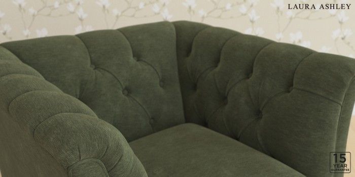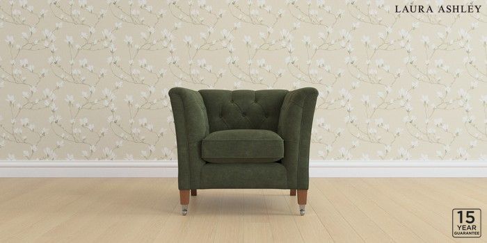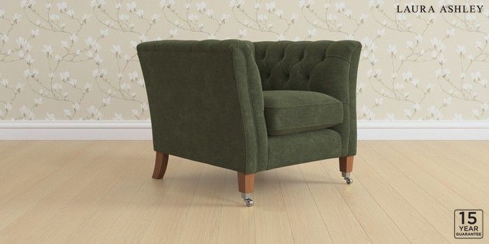 6.12.1 Buy Chatsworth Button Back by Laura Ashley Armchair Alwyn Velvet Ivy Green Straight Chrome Castor - Teak from the Laura Ashley online shop Click here to use our website with more accessibility support, for example screen readers