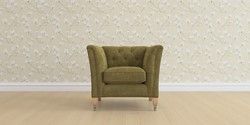 6.12.13 Buy Chatsworth Button Back by Laura Ashley Armchair Alwyn Velvet Olive Green Straight Chrome Castor - Light Oak from the Laura Ashley online shop Click here to use our website with more accessibility support, for example screen readers