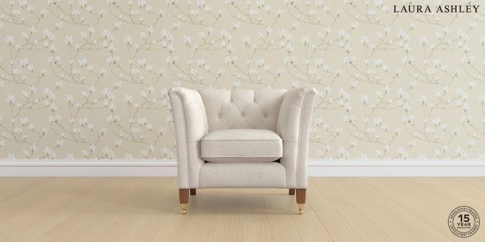 7.2.6 Buy Chatsworth Button Back by Laura Ashley Armchair Anneliese Oyster Natural Straight Brass Castor - Teak from the Laura Ashley online shop Click here to use our website with more accessibility support, for example screen readers