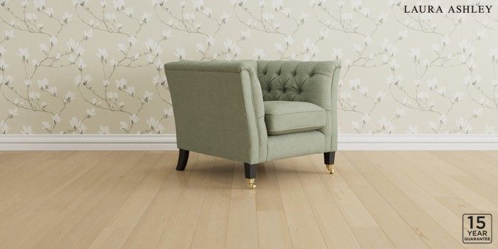 6.12.1 Buy Chatsworth Button Back by Laura Ashley Armchair Anneliese Sage Green Straight Brass Castor - Black from the Laura Ashley online shop Click here to use our website with more accessibility support, for example screen readers