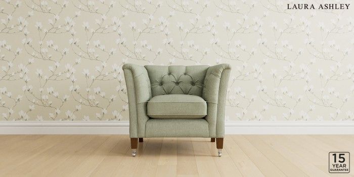6.12.13 Buy Chatsworth Button Back by Laura Ashley Armchair Anneliese Sage Green Straight Chrome Castor - Teak from the Laura Ashley online shop Click here to use our website with more accessibility support, for example screen readers
