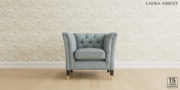 6.12.1 Buy Chatsworth Button Back by Laura Ashley Armchair Anneliese Seaspray Blue Straight Brass Castor - Black from the Laura Ashley online shop Click here to use our website with more accessibility support, for example screen readers