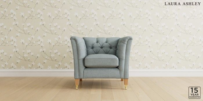 6.12.1 Buy Chatsworth Button Back by Laura Ashley Armchair Anneliese Seaspray Blue Straight Brass Castor - Light Oak from the Laura Ashley online shop Click here to use our website with more accessibility support, for example screen readers