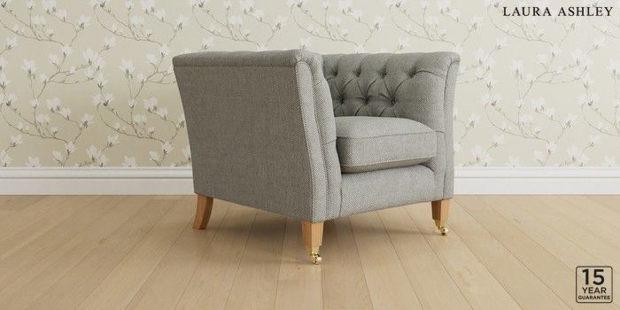 6.12.1 Buy Chatsworth Button Back by Laura Ashley Armchair Anneliese Steel Grey Straight Brass Castor - Light Oak from the Laura Ashley online shop Click here to use our website with more accessibility support, for example screen readers