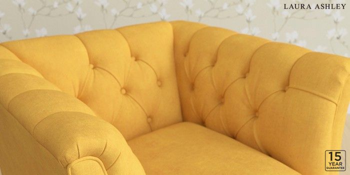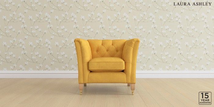 6.12.1 Buy Chatsworth Button Back by Laura Ashley Armchair Bainton Ochre Yellow Straight Brass Castor - Light Oak from the Laura Ashley online shop Click here to use our website with more accessibility support, for example screen readers