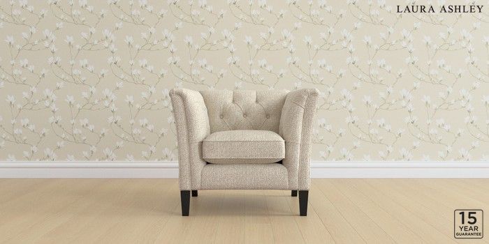 6.12.1 Buy Chatsworth Button Back by Laura Ashley Armchair Borwick Natural Straight Mid - Black from the Laura Ashley online shop Click here to use our website with more accessibility support, for example screen readers