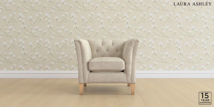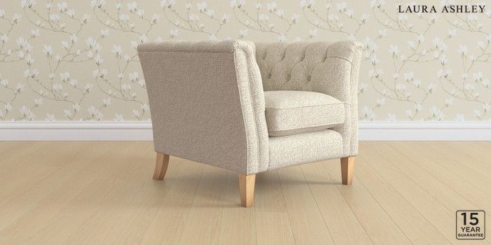6.12.1 Buy Chatsworth Button Back by Laura Ashley Armchair Borwick Natural Straight Mid - Light Oak from the Laura Ashley online shop Click here to use our website with more accessibility support, for example screen readers