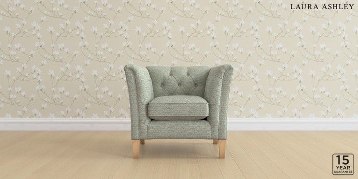 6.12.13 Buy Chatsworth Button Back by Laura Ashley Armchair Borwick Newport Blue Straight Mid - Light Oak from the Laura Ashley online shop Click here to use our website with more accessibility support, for example screen readers