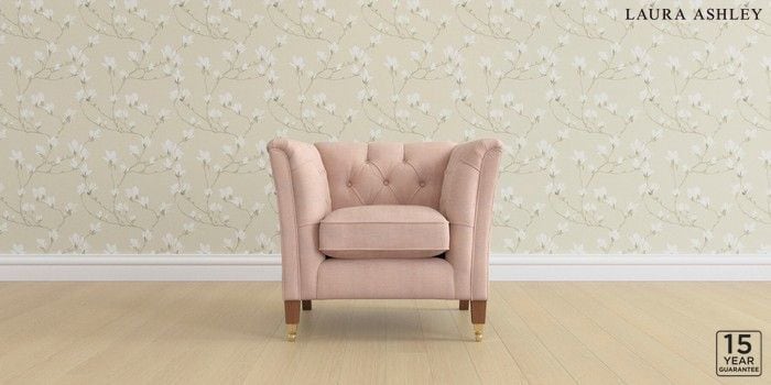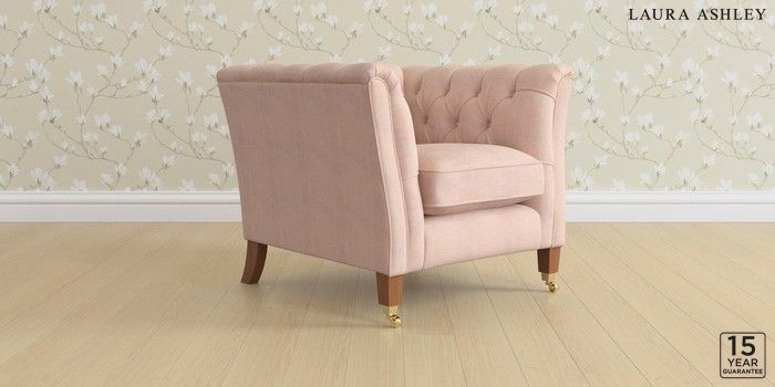 6.12.1 Buy Chatsworth Button Back by Laura Ashley Armchair Edwin Chenille Blush Pink Straight Brass Castor - Teak from the Laura Ashley online shop Click here to use our website with more accessibility support, for example screen readers