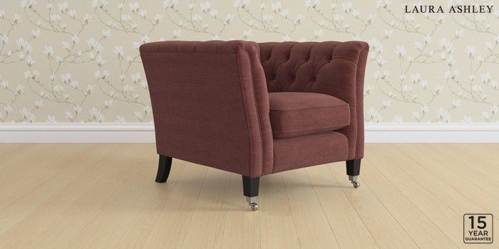 6.12.1 Buy Chatsworth Button Back by Laura Ashley Armchair Edwin Chenille Burgundy Red Straight Chrome Castor - Black from the Laura Ashley online shop Click here to use our website with more accessibility support, for example screen readers