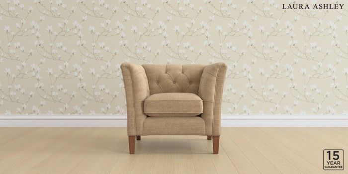 6.12.1 Buy Chatsworth Button Back by Laura Ashley Armchair Edwin Chenille Gold Natural Straight Mid - Teak from the Laura Ashley online shop Click here to use our website with more accessibility support, for example screen readers