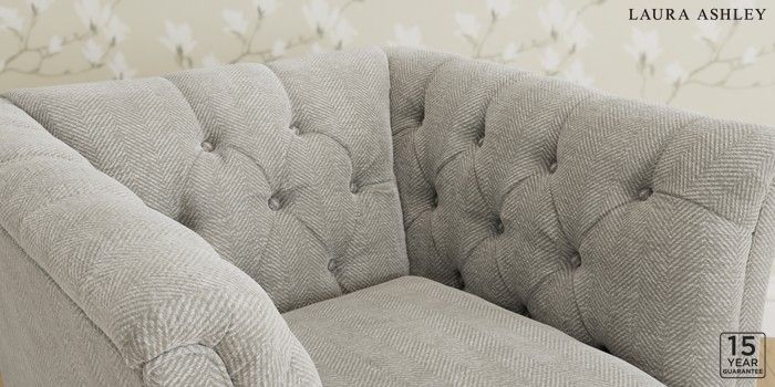 6.12.1 Buy Chatsworth Button Back by Laura Ashley Armchair Edwin Chenille Silver Grey Straight Brass Castor - Black from the Laura Ashley online shop Click here to use our website with more accessibility support, for example screen readers