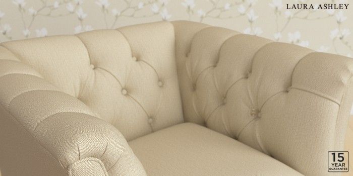 6.12.1 Buy Chatsworth Button Back by Laura Ashley Armchair Edwin Herringbone Natural Straight Brass Castor - Black from the Laura Ashley online shop Click here to use our website with more accessibility support, for example screen readers