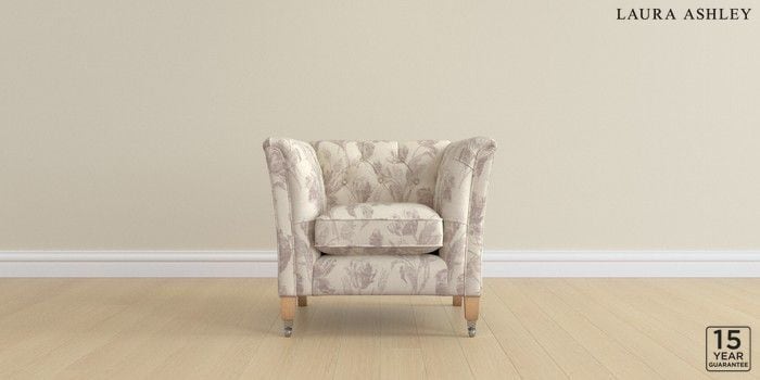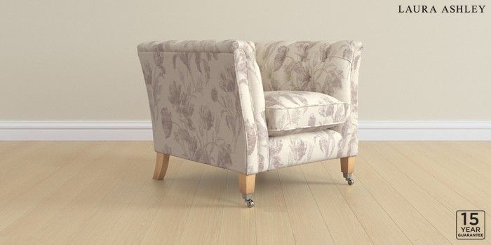 6.12.1 Buy Chatsworth Button Back by Laura Ashley Armchair Gosford Weave Dusky Plum Purple Straight Chrome Castor - Light Oak from the Laura Ashley online shop Click here to use our website with more accessibility support, for example screen readers