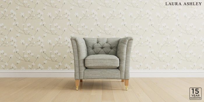 6.12.1 Buy Chatsworth Button Back by Laura Ashley Armchair Harley Dove Grey Straight Brass Castor - Light Oak from the Laura Ashley online shop Click here to use our website with more accessibility support, for example screen readers