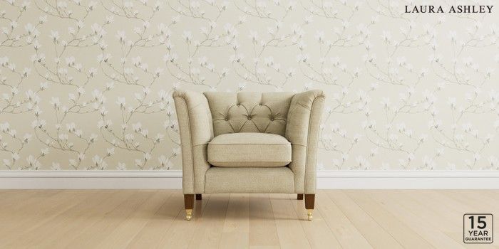 6.12.1 Buy Chatsworth Button Back by Laura Ashley Armchair Harley Natural Straight Brass Castor - Teak from the Laura Ashley online shop Click here to use our website with more accessibility support, for example screen readers