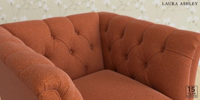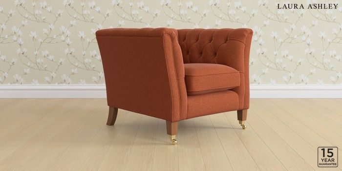 6.12.1 Buy Chatsworth Button Back by Laura Ashley Armchair Harley Terracotta Orange Straight Brass Castor - Teak from the Laura Ashley online shop Click here to use our website with more accessibility support, for example screen readers