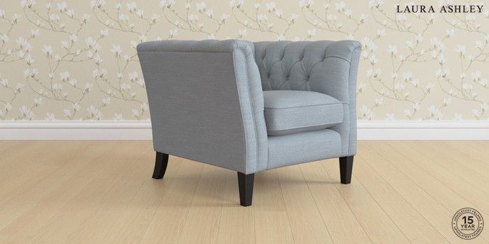 6.12.1 Buy Chatsworth Button Back by Laura Ashley Armchair Kinsham Seaspray Blue Straight Mid - Black from the Laura Ashley online shop Click here to use our website with more accessibility support, for example screen readers