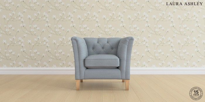 6.12.1 Buy Chatsworth Button Back by Laura Ashley Armchair Kinsham Seaspray Blue Straight Mid - Light Oak from the Laura Ashley online shop Click here to use our website with more accessibility support, for example screen readers