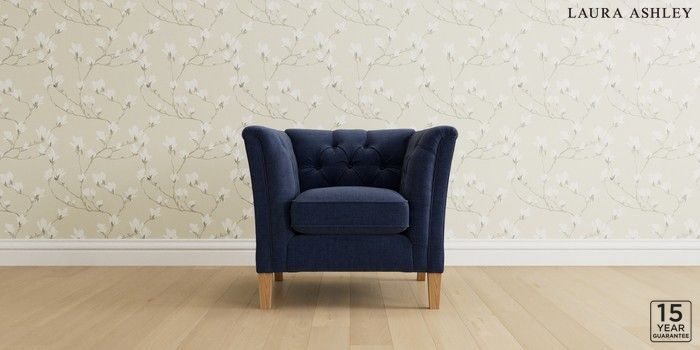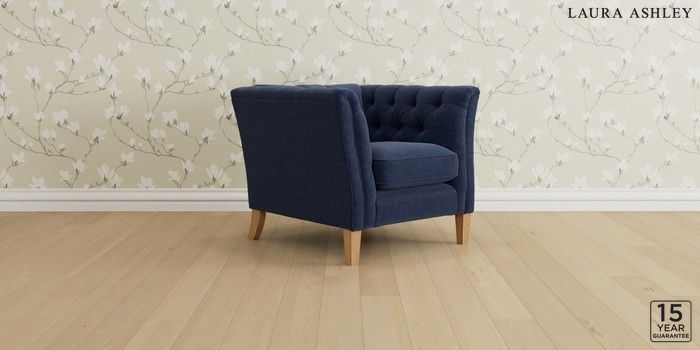 6.12.1 Buy Chatsworth Button Back by Laura Ashley Armchair Nantmor Midnight Navy Straight Mid - Light Oak from the Laura Ashley online shop Click here to use our website with more accessibility support, for example screen readers